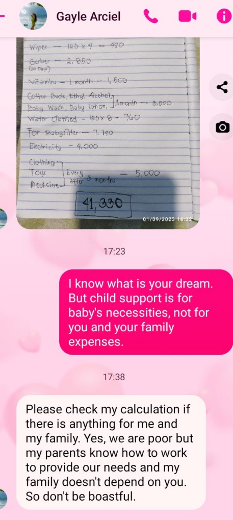 April 2023 Despite not signing the sketchy agreement, I still provided support several times for ₱20k. I visited the baby in April, together with my cousin and a friend, only to be publicly humiliated by the ungrateful and greedy baby mama.