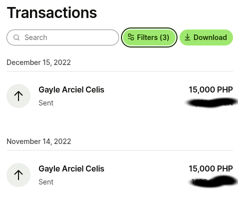 202302 12k by wise, 3k by PNB and 9k by Lazada202303 20k by PNB202304 20k by PNB