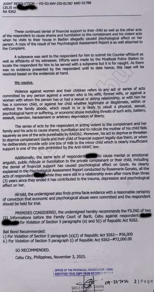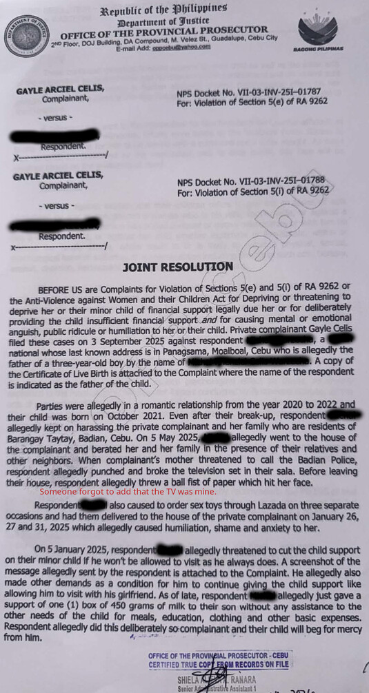 September 2025: Demanding visitation rights and decreasing support were the main reasons to start a criminal case against the father under Philippine law. (Got this from a policeman via messenger while I was abroad, which is why the scan quality is awful):